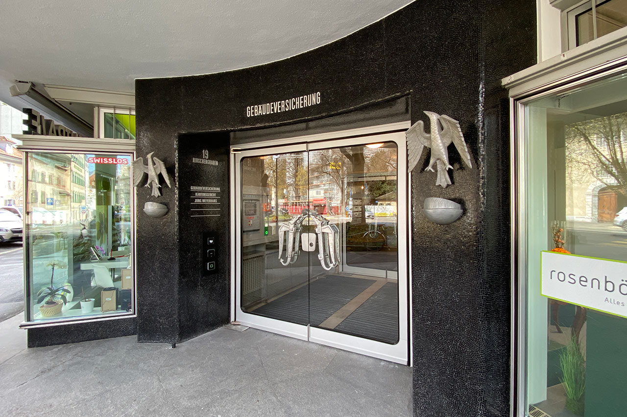 Im Zuge der Sanierung und Aufstockung der 50er-Jahre-Architekturperle, galt es die komplette Gebäude-Signaletik und die werblichen Massnahmen der Mieter zu erneuern, respektive zu ergänzen.