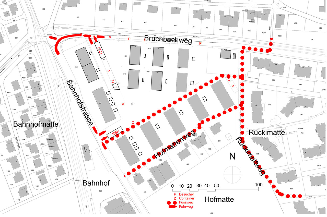 Vis á vis vom Bahnhof Fraubrunnen entstand die Wohnsiedlung Hofmatte. Wohnbauten unterschiedlicher Dekaden, Volumen und Materialisierungen bilden den unmittelbaren Kontext.