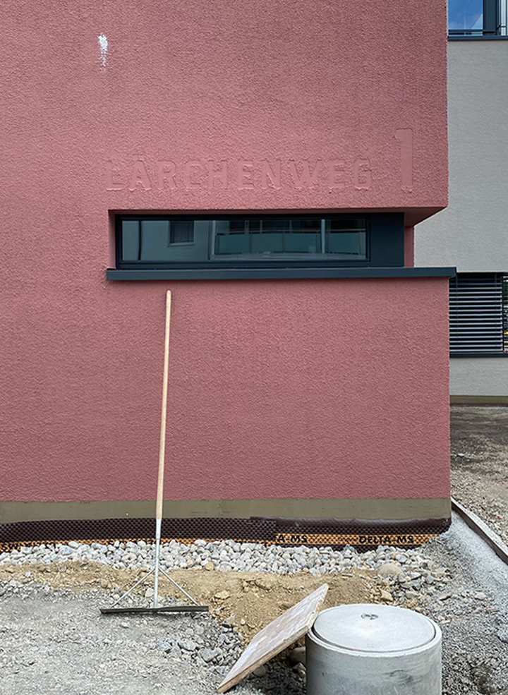Die Beschriftungen an den Fassaden wurden mittels Putzrelief umgesetzt. Diese relativ aufwändige Methode erfordert gutes Ineinandergreifen der involvierten Planer, Gipser, Werbetechniker und Bauleiter.