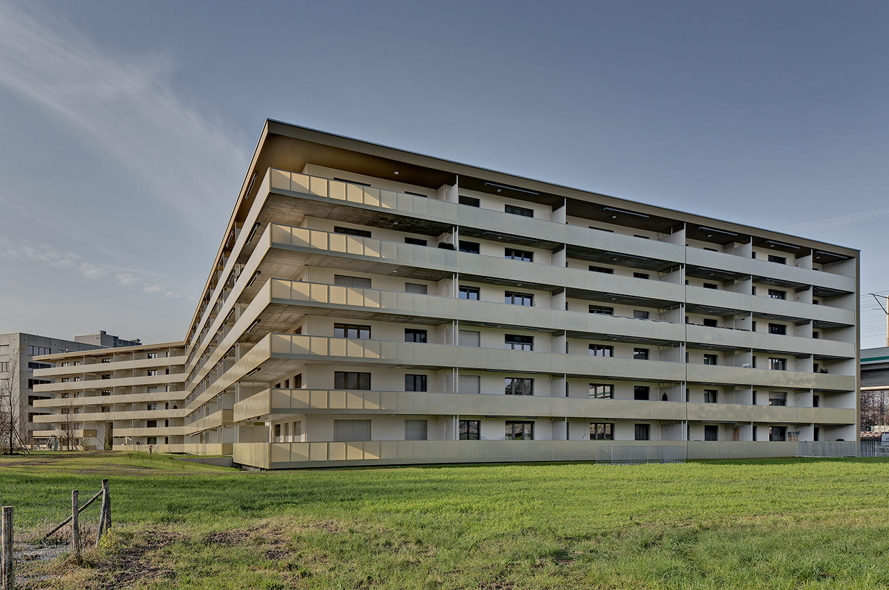 Die Wohnüberbauung an der Seidenstrasse ist Bestandteil der städtebaulichen Entwicklung im Zwicky-Areal, einer ehemaligen Seidenspinnerei. Das Perimeter liegt zwischen SBB-Hochbahntrassee und Chriessbach. Einhundertzweiundneunzig 2-4,5 Zimmer Wohnungen unterschiedlicher Typologien, in Eigentum und Miete, beinhaltet das Raumprogramm.